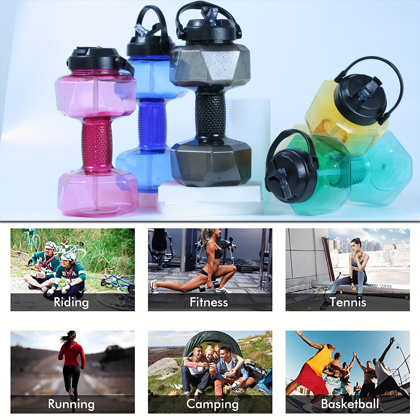 1pc Creative Dumbbell Shaped Water Bottle, Portable Fitness Water Bottles, Dual-Use Water Jug For Fitness Camping Cycling Gym Workout, Plastic Leakproof Water Bottle For Kid, Women And Men